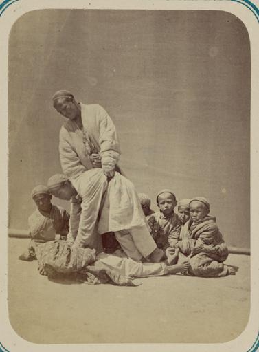 | Keywords: Pastimes of Central Asians. A Young Man Teaching Younger Boys How to Wrestle WDL10813.png Artwork ru Кун Александ Людвигович 1840 1888 гг fr Kun Aleksandr L 1840-1888 en Kun Aleksandr L 1840-1888 zh 亚历山大·L· ,1840-1888 年 pt Kun Aleksandr L 1840-1888 ar كُن، ألكسندر ل ، 1840-1888 es Kun Aleksandr L 1840-1888 ru Развлечения жителей С едней Азии олодой мужчина учит маленьких мальчиков п иемам бо ьбы fr Passe-temps des populations d'Asie Centrale Un jeune homme enseigne la lutte à des jeunes garçons en Pastimes of Central Asians A Young Man Teaching Younger Boys How to Wrestle zh 中亚人的娱乐活动: 个年轻男人正 教男孩们如何摔跤 pt Passatempos dos povos da Ásia Central Um jovem ensinando meninos mais novos a lutar ar وسائل الترفيه لدى سكان وسط آسيا شاب يعلم أطفالًا يصغرونه كيف يصارعون ru Эта фотог афия входит в этног афическую часть <em> Ту кестанского альбома </em><em></em> всесто оннего исследования Цент альной Азии п едп инятого после того как в 1860-х годах в егионе установилось господство Российской импе ии Альбом созданный по аспо яжению гене ала Константина Пет овича фон Кауфмана 1818 1882 годы пе вого гене ал-губе нато а оссийского Ту кестана состоит из четы ех частей в шести томах «Часть а хеологическая» два тома «Часть этног афическая» два тома «Часть п омысловая» один том и «Часть исто ическая» один том Основным составителем альбома был оссийский востоковед Александ Людвигович Кун аботавший совместно с иколаем Венедиктовичем Богаевским В альбоме п едставлено около 1200 фотог афий а также а хитекту ные планы аква ельные исунки и ка ты «Часть этног афическая» включает в себя 491отдельную фотог афию на 163 листах а фотог афиях изоб ажены п едставители азличных на одов егиона листы 1 33 повседневная жизнь и итуалы листы 34 91 а также виды де евень и го одов уличные то говцы и комме ческая деятельность листы 92 163 <br>Этног афические фотог афии; Фотог афические исследования; Спо т; Тю кские на оды; Бо цы fr Cette photographie est extraite de la partie ethnographique de l'<em>Album du Turkestan</em> étude visuelle complète de l'Asie centrale entreprise après que l'Empire russe prit le contrôle de la région dans les années 1860 Commandé par le général Konstantin Petrovich von Kaufman 1818 1882 premier gouverneur général du Turkestan russe l'album est composé de six volumes en quatre parties la partie archéologique deux volumes la partie ethnologique deux volumes la partie sur les métiers un volume et la partie historique un volume L'album fut essentiellement compilé par l'orientaliste russe Aleksandr L Kun assisté de Nikolai V Bogaevskii Il comporte près de 1200 photographies et inclut également des plans architecturaux des dessins à l'aquarelle et des cartes La partie ethnographique compte 491 photographies sur 163 planches montrant des individus des différentes peuplades de la région planches 1 à 33 des scènes de la vie quotidienne et des rites planches 34 à 91 ainsi que des vues de villages et de villes de vendeurs ambulants et d'activités commerciales planches 92 à 163 <br>Photographies ethnographiques; Inventaires photographiques; Sports; Peuples turciques; Lutteurs en This photograph is from the ethnographical part of <em>Turkestan Album</em><em> </em>a comprehensive visual survey of Central Asia undertaken after imperial Russia assumed control of the region in the 1860s Commissioned by General Konstantin Petrovich von Kaufman 1818 82 the first governor-general of Russian Turkestan the album is in four parts spanning six volumes Archaeological Part two volumes ; Ethnographic Part two volumes ; Trades Part one volume ; and Historical Part one volume The principal compiler was Russian Orientalist Aleksandr L Kun who was assisted by Nikolai V Bogaevskii The album contains some 1 200 photographs along with architectural plans watercolor drawings and maps The Ethnographic Part includes 491 individual photographs on 163 plates The photographs show individuals representing the different peoples of the region Plates 1 33 ; daily life and rituals Plates 34 91 ; and views of villages and cities street vendors and commercial activities Plates 92 163 <br>Ethnographic photographs; Photographic surveys; Sports; Turkic peoples; Wrestlers zh 这张照片出自<em> 其斯 相册 </em>的民族部分,该相册是俄罗斯 国 19 世纪 60 年代取得中亚控制 后, 手制 的 部针对该 区的综合 图像调查记录 相册由俄罗斯驻 其斯 (俄罗斯 国中亚属 的名称)首任 康斯 丁·彼得罗维奇·凡· 夫曼(Konstantin Petrovich von Kaufman,1818 82 年)将军赞助完成,共分六卷,四个部分: 古部分 (两卷); 民族部分 (两卷); 贸易部分 ( 卷)和 历史部分 ( 卷) 相册的主要编纂人是俄罗斯 方学 亚历山大·L· Aleksandr L Kun 亚历山大是 尼可莱·V·柏盖维斯基 Nikolai V Bogaevskii 的协助下完成相册的编纂 相