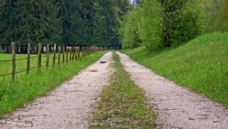 Keywords: pasture fence lane road away nature meadow green wide distant distance