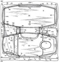 | Keywords: Pat2220482fig2.GIF Figure 2 from U S Patent No 2 220 482 Issued Nov 5 1940 Prefabricated Bathroom The interior of Buckminster Fuller's famous prefabricated bathroom that integrates tub water closet and lavatory It lacks windows so it can fit more locations It is constructed of light bacteriostatic alloys copper or steel coated with 97 tin and 3 silver in four quarter-parts each portable by two people through doorways The unused sides of the metal are coated with asphalt and fabric to deaden noise 11 is the bathtub chamber 12 the lavatory and water closet Lavatory 12 can be used alone as a half-bath All corners are radiused to 4 10cm to ease cleaning All parts fit to drain inside preventing water damage in the supporting structure Sliding doors 16 and 17 are compact and provide privacy The top of entranceway 28 has a single light bulb not shown with a waterproof window on each chamber There's a large quiet ventilation fan not shown under sink 56 It draws fog and odors down away from head level The tub's floor is 9 23cm higher than the lavatory floor reached by a 4 12cm step 111 surfaced with nonslip cork 88 The height makes entering and cleaning easier An electric resistive heater in step 111 warms the floors tub and commode by conducting heat through their metal The light fan and heater can be controlled from inside or outside the bathroom which also has an optional exterior signal light to show that it is in use The tub has bars to be both towel racks and balance-bars 44 45 54 Four niches 30 are for bath accessories and further hand-holds Stand-pipe 172 leads to the shower head not shown The shower head and spigot face away from entranceway 28 to reduce splashing Hot 168 and cold 169 water knobs with a third knob not shown to select the shower head or spigot Knobs are within reach from entranceway 28 There's an overflow outlet not shown below the lip of entranceway 28 It connects with drain 155 which has a trap accessible under step 111 The lavatory has a sink 56 and commode 72 Sink 56 has a spigot facing away from the user to reduce splashing It also has built-in accessories drain 160 with an overflow drain accessible trap 154 soap dish 64 and towel rack 138 Medicine cabinet 118 has door 116 which opens outward and has a mirror on its inside thereby kept dry and free of fogging The toilet paper compartment door 126 is hinged on the bottom and mounts toilet paper 130 with bracket 129 Door 126 tilts out to replace the toilet paper 130 The flush for toilet tank 125 is handle 127 U S Patent Office 10 09 7 February 2010 UTC Richard Buckminster Fuller Text and graphics of expired U S patents are in the public domain Expiration occurred Nov 6 1974 PD-USGov Original upload log en wikipedia Arsenikk CommonsHelper page en wikipedia Pat2220482fig2 GIF 2010-02-07 10 09 Ray Van De Walker 529×547× 42919 bytes <nowiki> Figure 2 from U S Patent No 2 220 482 Issued Nov 5 1940 Prefabricated Bathroom The interior of Buckminster Fuller's famous prefabricated bathroom that integrates tub water closet and lavatory It lacks windows so </nowiki> Bathrooms Dymaxion House |