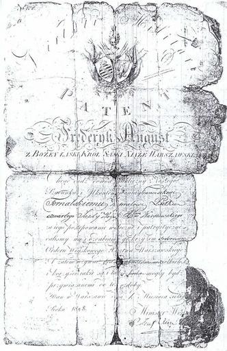| Keywords: Patent Virtuti Militari 1808.jpg Oryginalny patent na order Virtuti Militari dla Franciszka Fornalskiego z 1808 roku podpisany osobiście przez księcia Józefa Poniatowskiego Patent ten pochodzi z pamiątek rodzinnych grafika jest wykonanym przeze mnie skanem Treść patentu VIRTUTI MILITARI PATENT Frederyk August z Bożey Łaski Król Saski Xiążę Warszawski Chcąc dadź dowód publiczny Naszego Szacunku i Ukontentowania Franciszkowi Fornalskiemu Kapralowi Pułku czwartego Jazdy Woysk Xięztwa Warszawskiego za iego postępowanie waleczne i patryotyczne daliśmy mu i ozdabiamy go Krzyżem srebrnym Orderu Woyskowego Xięztwa Warszawskiego A zatem używać będzie honorów wszelkich i korzyści iakie są i iakie będą mogły bydź przywiązanemi do tey ozdoby Dań w Warszawie dnia 1go Miesiąca Lutego Roku 1808 Minister Woyny Józef Xiąże Poniatowski PD-old original upload log page pl wikipedia Patent_Virtuti_Militari_1808r jpg 2007-01-06 15 43 Czestomir 1028×1584× 283573 bytes <nowiki>Oryginalny patent na order Virtuti Militari dla Franciszka Fornalskiego z 1808 roku podpisany osobiście przez księcia Józefa Poniatowskiego Patent ten pochodzi z pamiątek rodzinnych grafika jest wykonanym przeze mnie skanem </nowiki> Virtuti Militari |