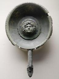 | Keywords: Patera with Medusa BM 1882.4-5.1.jpg Patera with the head of Medusa surrounded by a wreath of leaves and birds Roman Empire century 1 AD copper alloy nielloed cm 240 145 Institution British Museum Department of Prehistory and Europe room 49 1365583 object history Faversham credit line ProvenanceEvent purchase J W Morris 1882 accession number 1882 4-5 1 own photo date 2012-02-11 User Jastrow/cc-by-2 5 artwork license PD-old-100-1923 photo license Cc-by-2 5 other versions Gorgoneia Patera Roman Britain Faversham Room 49 British Museum Taken with Nikon D300s Taken with Sigma 17-50mm F2 8 EX DC OS HSM |