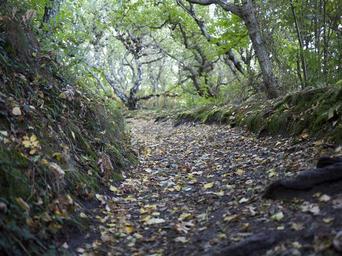 Keywords: path green bornholm tree organic agriculture outdoors environment trunk leaves branches nature woodland forest wilderness woods