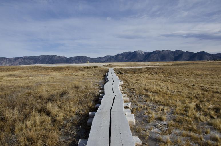 Keywords: path landscape mountains sky blue grass desert outdoor california clouds day sunny wood wooden path walkway adventure tourism explore destination