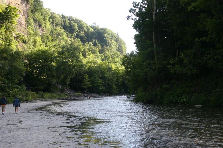 Keywords: outdoor sunlight hiking tree fhiking cayuga nobody remote park green spring travel calm rock upstate destinations life lakes locations finger stream pathway lake serene united clouds flowing falls forest waterfall Taughannock