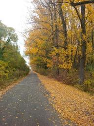 Keywords: path trail footpath autumn fall trees leaves yellow walking walkway road nature environment natural lifestyle hiking outdoors foliage country rural peaceful wilderness forest woods
