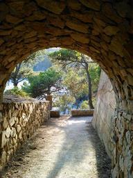 Keywords: path tunnel trees nature pine vegetation trail landscape forest tree