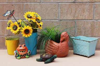 | Keywords: patio southwestern art colorful design decor orange yellow vibrant mexican art new mexico decoration planter artful outdoor art color therapy summer frog turtle green plant home decoration creative residential stone features decorate talavera pottery |