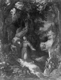 | Keywords: Paul Bril - Saint Francis of Assisi Receiving the Stigmata - Walters 37783.jpg Walters Art Museum artwork Q18749329 Creator Paul Bril In 1224 as St Francis 1181-1226 and a follower were in the mountains meditating on Christ's suffering Francis had a vision of a seraph a six-winged angel crucified like Christ Immediately there appeared on Francis's body the stigmata visible marks of the wounds of the crucified Christ that he carried to his grave The religious orders founded by St Francis were influential in the Southern Netherlands and enjoyed the support of the archdukes Bril trained as a landscapist in Antwerp but had a successful career in Rome The composition and deep brownish-green tones suggest his manner around 1620 but the execution lacks his clarity and the natural detail in the lower left is more prominent than in his accepted works This is the work of a talented pupil or imitator between 1620 1629 Baroque Oil on canvas cm 39 2 31 1 accession number 37 783 35399 Don Marcello Massarenti Collection Rome date and mode of acquisition unknown Henry Walters city Baltimore Walters Art Museum Henry Walters Acquired by Henry Walters with the Massarenti Collection 1902 place of origin Rome Italy Walters Art Museum license 2D Baroque paintings in the Walters Art Museum Paul Bril Media contributed by the Walters Art Museum needs category review Media contributed by the Walters Art Museum needs artist update Paintings of the Stigmatisation of Francis of Assisi Bril |