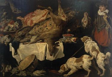 | Keywords: Paul de Vos - Hunter and Dogs by a Table with Dead Game and Fruit.jpg Artwork Creator Paul de Vos en Hunter and Dogs by a Table with Dead Game and Fruit 1640-1650s http //www hermitagemuseum org/wps/portal/hermitage/digital-collection/01 +Paintings/47100/ lng en Oil canvas size cm 159 230 Hermitage object history credit line accession number PD-old-100 PD-old-100 Paintings by Paul de Vos in the Hermitage 17th-century still life paintings of dead game by Paul de Vos 17th-century oil on canvas paintings |