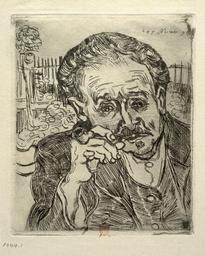 | Keywords: Paul Ferdinand Gachet. Etching by V. van Gogh, 1890 WDL2871.png Artwork ru Гог Винсент ван 1853-1890 fr Gogh Vincent van 1853-1890 en Gogh Vincent van 1853-1890 zh 高 文森特·凡 1853-1890 pt Gogh Vincent van 1853-1890 ar غوخ فينسنت فان 1853-1890 es Gogh Vincent van 1853-1890 ru Поль Фе динанд Гаше Г авю а В ван Гога 1890 г fr Paul Ferdinand Gachet Eau-forte de V van Gogh 1890 en Paul Ferdinand Gachet Etching by V van Gogh 1890 zh 罗·菲迪南德·加歇 凡高 刻,1890 年 pt Paul Ferdinand Gachet Gravura de V van Gogh 1890 ar بول فيرديناند غاشيه حفر صنع ف فان غوخ، 1890 ru Поль Фе динанд Гаше 1828-1909 гг был я кой и нео дина ной личностью; по п офессии он был в ачом и занимался нап авлением медицины кото ое впоследствии стали называть комплемента ной или нет адиционной медициной Он аботал п инимая пациентов в своем смот овом кабинете в Па иже а жил в п иго оде Па ижа Ове -Сю -Уаз Он был большим любителем искусства - он был художником-любителем коллекционе ом художественных п оизведений и д угом многих художников своего в емени; в числе его д узей был эксцент ичный голландский художник Винсент Ван Гог 1853-1890 гг Гаше и Ван Гог были знакомы недолго в течение всего двух месяцев они вст етились 20 мая 1890 года когда Ван Гог впе вые п иехал в Ове а 27 июля того же года художник покончил жизнь самоубийством В то в емя Ван Гог ст адавший маниакальным синд омом плодотво но аботал создавая новое п оизведение каждый день С помощью Гаше он создал данную г авю у-по т ет кото ая была отпечатана на печатном станке Гаше ве оятнее всего после воск есного обеда в доме Гаше 15 июня 1890 года Данная копия г авю ы как и многие д угие п едметы п инадлежавшие Гаше была п иоб етена Ген и С Веллкомом у сына Гаше Поля Луи Гаше в 1927 году Изоб ажение кошки на нижнем поле указывает на тот факт что данная г авю а п инадлежала Полю Луи Гаше <br>Г авю ы; Гаше Поль Фе динаннд 1828-1909 гг ; Гог Винсент ван 1853-1890 гг ; Реп одукции по т етов fr Paul Ferdinand Gachet 1828-1909 était un médecin non-conformiste qui pratiquait ce qu'on a par la suite appelé la médecine alternative Il avait établi son cabinet à Paris et avait son domicile à Auvers-sur-Oise en banlieue parisienne Féru d'art collectionneur et artiste amateur lui-même il était l'ami de nombreux peintres dont l'excentrique Hollandais Vincent Van Gogh 1853-90 Gachet et Van Gogh ne se fréquentèrent que pendant deux mois du 20 mai 1890 date à laquelle Van Gogh s'est installé dans une pension à Auvers jusqu'au 27 juillet de la même année lorsque le peintre s'est suicidé Van Gogh qui souffrait de troubles mentaux achevait à cette époque une toile par jour Grâce à l'aide de Gachet il a pu dessiner ce portrait à l'eau-forte imprimé sur la presse du médecin probablement l'après-midi du 15 juin 1890 après un repas dominical chez celui-ci Ce tirage à l'eau-forte a été acheté en 1927 par Henry S Wellcome à Paul-Louis Gachet fils du médecin avec de nombreux autres effets personnels ayant appartenant à ce dernier Le chat qui apparaît dans la marge inférieure est un cachet certifiant que la gravure provient de Paul-Louis Gachet <br>Eaux-fortes; Gachet Paul-Ferdinand 1828-1909; Gogh Vincent van 1853-1890; Portraits en images en Paul Ferdinand Gachet 1828-1909 was a maverick physician who practiced what later came to be called complementary or alternative medicine He had a consulting room in Paris to which he commuted from his house in Auvers-sur-Oise outside the city He was an art lover--an amateur artist art collector and a friend of many artists one of whom was the eccentric Dutchman Vincent Van Gogh 1853-90 Gachet and Van Gogh only knew each other for a couple of months from May 20 1890 when Van Gogh arrived to stay in a lodging house in Auvers to July 27 of the same year when the painter committed suicide Van Gogh suffering from a form of mania was producing one painting a day at that time With Gachet's help he was able to draw this etched portrait to be printed on Gachet's printing press probably after Sunday lunch at Gachet's house on June 15 1890 This impression of the print was bought by Henry S Wellcome from Gachet's son Paul-Louis Gachet in 1927 together with many other items of Gachet personalia The cat in the bottom margin is the stamp certifying the print's provenance from Paul-Louis Gachet <br>Etchings; Gachet Paul Ferdinand 1828-1909; Gogh Vincent van 1853-1890; Portrait prints zh 罗·费德南德·加歇(1828-1909 年)是 名与众不同的医生,他 创了后 被称为补充或替代医学的先河 他 巴黎 间诊疗室,他每天从市外的奥威尔家中 返于诊疗室 他是 名艺 爱好 名业余画家,艺 收藏家,还与众多艺 家结交 友,其中的 位就 不同寻常的荷兰人文森特·凡·高(1853-90 年) 加歇和凡·高仅相识数 :从 1890 年 5 20 日凡·高寄宿 