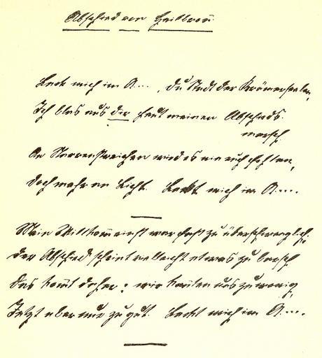 | Keywords: Paul Hegelmaier Abschiedsgedicht Kraemerseelen.jpg  Abschiedsgedicht des Heilbronner OberbĂĽrgermeisters Paul Hegelmaier 1847 “1912 an die Stadt Heilbronn Text Abschied von Heilbronn<br /> Leck mich im A du Stadt der Krämerseelen <br /> Ich blas aus dir heut meinen Abschiedsmarsch <br /> An Narrenstreichen wird es nie euch fehlen <br /> doch mehr an Licht Leckt mich im A <br /> Mein Willkomm einst war fast zu ĂĽberschwenglich <br /> Der Abschied scheint vielleicht etwas zu barsch <br /> Das kommt daher wir kannten uns zu wenig <br /> Jetzt aber nur zu gut Leckt mich im A Parting poem of Heilbronn mayor Paul Hegelmaier 1847 “1912 dedicated to the city Stadtarchiv Heilbronn http //www stadtarchiv-heilbronn de/index php d /stadtgeschichte/stichworte/k/kraemerseelen/ f cont_stadtgeschichte htm anchor _stadtgeschichte_stichworte_k_kraemerseelen_ anchor _stadtgeschichte_stichworte_k_kraemerseelen_ _stadtgeschichte_stichworte_k_kraemerseelen_ http //www stadtarchiv-heilbronn de/index php d /stadtgeschichte/stichworte/k/kraemerseelen/ f cont_stadtgeschichte htm anchor _stadtgeschichte_stichworte_k_kraemerseelen_ anchor _stadtgeschichte_stichworte_k_kraemerseelen_ _stadtgeschichte_stichworte_k_kraemerseelen_ circa 1904 “1912 was circulated in printed form most likely after his death Paul Hegelmaier 1847 “1912 pd PD-old Paul Hegelmaier Documents of Heilbronn German Kurrent |