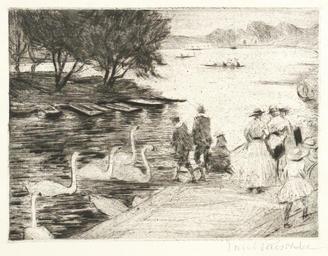| Keywords: Paul Paeschke Schwäne an der Havel.jpg Berlin Schwäne an der Havel Radierung auf Maschinenbütten um 1920 17 8 x 23 6 cm Darstellung http //www ebay de/itm/PAUL-PAESCHKE-Berlin-Schwaene-an-der-Havel-Radierung-1920-/371294451362 ~ 1920 Creator Paul Paeschke PD-old-auto-1923 1943 Paul Paeschke 1920s etchings People in parks in art People with swans in art Havel in Berlin Berlin in the 1920s Berlin in art | ||||