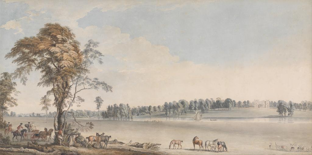 | Keywords: Paul Sandby - North West View of Wakefield Lodge in Whittlebury Forest, Northamptonshire - Google Art Project.jpg Inscribed in gold paint on mount lower center North West View of WAKEFIELD LODGE in Whittlebury Forest Inscription _Signed_and_Dated Signed and dated in gold paint lower left P Sandby 1767 Not on View Watercolor with pen and gray ink and touches of gold paint over graphite on medium slightly textured laid paper laid down on thick cream moderately textured wove paper mount cattle cattle clouds sky north west men women figures river trees forest carriage sailboat landscape boat special url_id 9QFFPaIPHAATnA PD-old-100-1923 1809 Google Art Project works by Paul Sandby Topographical views by Paul Sandby Wakefield Lodge Northamptonshire 1767 |