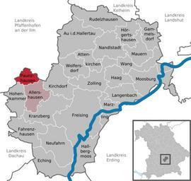 | Keywords: Paunzhausen in FS.svg DeLocMaps Paunzhausen Landkreis Freising District of Freising Freising district L'arrondissement de Freising Arrondissement de Freising Bayern Bavière Bavaria Adobe Illustrator <br/> own based on <br/> File Municipalities_in_Bavaria svg by TUBS 2010-05-07 Hagar66 based on work of TUBS Hagar66/licensesection Attribution TUBS/Credits Locator maps of municipalities in Landkreis Freising Location not applicable Paunzhausen | ||||