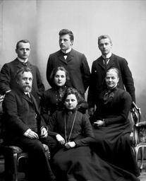 | Keywords: Paus family portrait NFB-18645.jpg Bernhard Pauss 1839 “1907 and family wife Henriette Pauss sons from left to right engineer and industrial leader Augustin Paus surgeon and President of the Norwegian Red Cross Nikolai Nissen Paus lawyer and director at the Norwegian Employers' Confederation George Wegner Paus daughters from left to right Henriette Wegner Paus Karoline Louise Paus NF NFB 18645 familieportrett Creator Gustav Borgen circa 1900 certainly before 1907 death of Bernhard Pauss PD-old Photos from Norwegian Museum of Cultural History by Gustav Borgen Group photographs of families Black and white photographs of families Paus family 1900 portrait photographs |