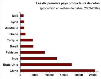 | Keywords: Pays producteurs coton 2004.svg fr Graphique représentant la production de coton des dix premiers pays producteurs en milliers de balles Source http //www nationmaster com/graph/agr_cot_pro-agriculture-cotton-production Cotton production most recent by country Own Urban 2009-04-21 Cotton industry Agriculture in the United States |