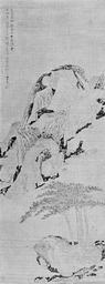 | Keywords: Paysage sur un poème de Jia Dao, 1840 n° 4 - inventaire 164par le peintre chinois Su Renshan.jpg fr Paysage sur un poème de Jia Dao Papier 109x40cm Daté de l'été 1840 signé Sceau blanc Représente le premier épanouissement du style original de Su Renshan Le lavis est presque entièrement éliminé; il ne subsiste plus qu'un jeu linéaire au trait pur Ceci n'entraine nulle monotonie Su Renshan alterne subtilement dans le graphisme même des valeurs d'encre différentes mêlant traits pâles et traits soutenus La vie et l'œuvre de Su Renshan Rebelle Peintre et Fou Auteur Pierre Ryckmans Éditeur Imprimerie Cathay Press Ltd Cahier 3 Hong Kong langue français mois septembre année 1970 Image 4 inventaire 164 Cahier 3 passage 106 et 204 Photo en N et B Creator Su Renshan 1840 PD-old-100 Su Renshan |