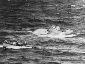| Keywords: PBY-5 of VP-52 sinking off Galapagos in January 1942.jpg The U S Navy Consolidated PBY-5 Catalina 52-P-11 from Patrol Squadron 52 VP-52 attached to Patrol Wing 2 PATWING TWO based at Seymour Bay Galapagos shown here on 17 January 1942 as a crew from the light cruiser USS Richmond CL-9 attempted to salvage the downed aircraft The PBY-5 BuNo 2368 of VP-52 made a hard a landing off Galopagoas Island on 9 January 1942 due to fuel exhaustion The crew pilot Lt jg W T Sutherland ENS W J Lahodney RM1 L L Weiss NAP RM2 J P Carlson SEA1 H C Martin AMM2 J W Miller and RM3 W B Valyou was rescued The crewless plane was taken under tow by USS Richmond CL-9 eight days later but sank in bad weather Official U S Navy photo http //www history navy mil/our-collections/photography/numerical-list-of-images/nhhc-series/nh-series/NH-86000/NH-86973 html NH 86973 from the U S Navy http //www history navy mil Naval History and Heritage Command 1942-01-17 U S Navy PD-USGov-Military-Navy Consolidated PBY Catalina Patrol Squadron 52 United States Navy Pacific War in January 1942 1942 in aviation in Ecuador Galápagos Islands |