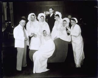 | Keywords: jessie tarbox beals jessietarboxbeals halloween greenwich village greenwichvillage costumes people Jessie Tarbox Beals (costumed as a nurse) and seven unidentified men costumed as infants and doctors. The "doctor" (left) is taking the pulse of an "infant" who is pretending to cry; Beals is holding a wine bottle up to an "infant's" mouth, ca. 1932-1935 Photographer: Jessie Tarbox Beals Catalog Record: via.lib.harvard.edu/via/deliver/deepLink?_collection=via&... Questions? Ask a Schlesinger Librarian Jessie Tarbox Beals (costumed as a nurse) and seven unidentified men costumed as infants and doctors. The "doctor" (left) is taking the pulse of an "infant" who is pretending to cry; Beals is holding a wine bottle up to an "infant's" mouth, ca. 1932-1935 Photographer: Jessie Tarbox Beals Catalog Record: via.lib.harvard.edu/via/deliver/deepLink?_collection=via&... Questions? Ask a Schlesinger Librarian |