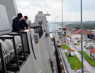 | Keywords: PCU Anchorage passes through the Panama Canal. (8188175504).jpg PANAMA CANAL Nov 9 2012 Sailors assigned to the amphibious transport dock ship Pre-Commissioning Unit PCU Anchorage LPD 23 watch as the ship passes through the Gatun locks the first of three sets of locks ships use to transit the Panama Canal Anchorage is on her maiden transit to her future homeport in San Diego Calif The ship is scheduled to be commissioned next spring in her namesake city of Anchorage Alaska The U S Navy has a 237-year heritage of defending freedom and projecting and protecting U S interests around the globe Join the conversation on social media using warfighting U S Navy photo by Mass Communication Specialist 1st Class Aramis X Ramirez/Released 121109-N-JU810-051 Join the conversation http //www facebook com/USNavy www facebook com/USNavy http //www twitter com/USNavy www twitter com/USNavy http //navylive dodlive mil navylive dodlive mil https //www flickr com/photos/usnavy/8188175504/ PCU Anchorage passes through the Panama Canal 2012-11-09 07 07 https //www flickr com/people/56594044 N06 Official U S Navy Page from United States of America PD-USNavy Official U S Navy Imagery https //flickr com/photos/56594044 N06/8188175504 2016-12-14 02 18 47 United States Government Work Files from the U S Navy Flickr stream Files uploaded by Reguyla United States Navy |