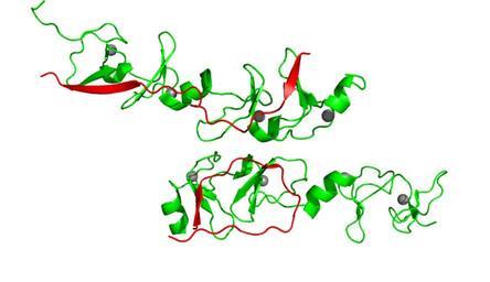 | Keywords: PDB-2RGT-Complex Lhx3 and Isl1.png en Crystal Structure of Lhx3 LIM domains 1 and 2 with the binding domain of Isl1 The red is a fraction of Isl-1 and the green is a fraction of Lhx3 Grey sphere is zinc own Takuma-sa 2011-08-17 Cc-zero Transcription factors |