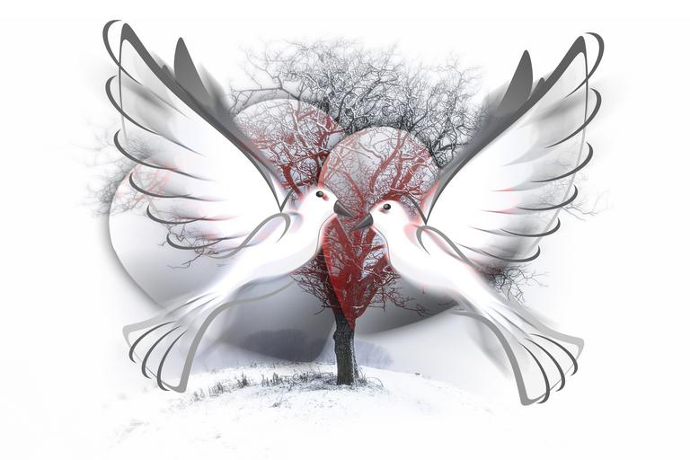Keywords: peace dove peace pigeons heart tree kahl winter silhouette love luck abstract relationship valentine's day romance romantic loyalty tender tenderness affection