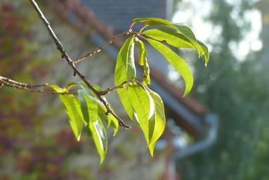 Keywords: peach sheet tree branch green peach leaves