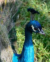 Keywords: peacock bird feather peacock feathers blue iridescent wheel head plumage