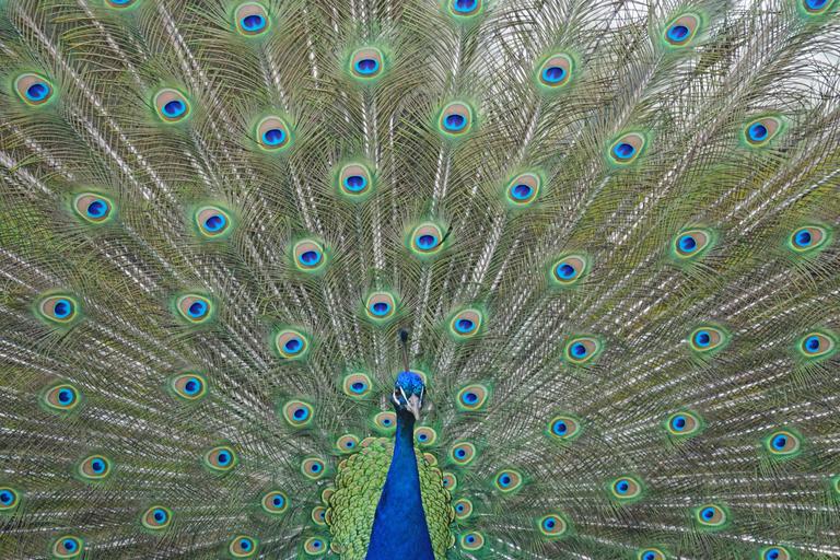 Keywords: peacock blue bird peacock feathers pride wheel wildlife photography