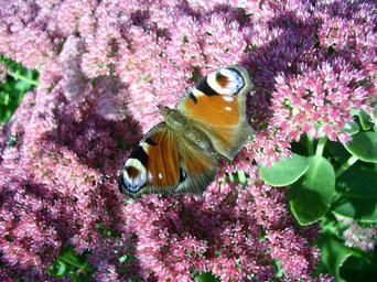 Keywords: peacock butterfly bird flower