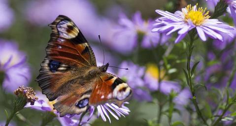 Keywords: peacock butterfly butterfly herbstaster peacock insect close animal nature spread blossom bloom butterflies sun