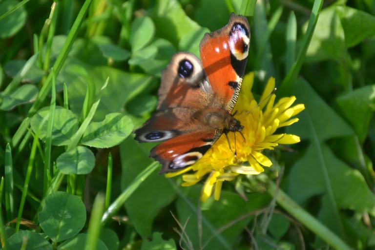 Keywords: peacock butterfly butterfly flower yellow grass