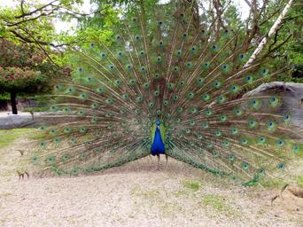 Keywords: peacock peacock wheel bird animal beat rad feather pride iridescent colorful spring dress plumage male peacock blue beautiful peacock feather green balz striking species blue peacock unique bright nature trees zoo