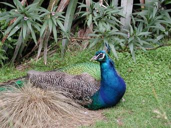 Keywords: Peacock sitting on grass.jpg Peacock sitting on grass Photo taken in Staglands Wildlife Reserve New Zealand Own 2007-01-20 Pseudopanax at http //en wikipedia org en wikipedia Pavo cristatus captive male