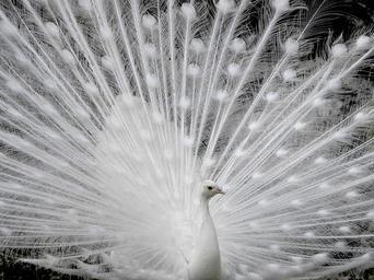 Keywords: peacock white plumage wheel bird