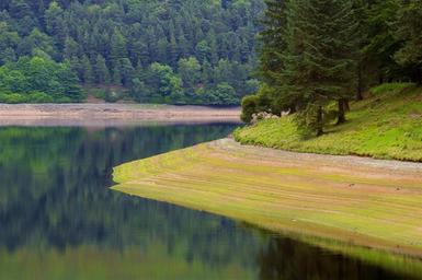 Keywords: peak district reservoir howden reservoir trees calm water reflections