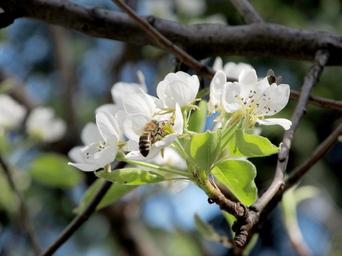 Keywords: pear flower bee spring nature bee on flower