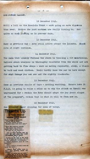 | Keywords: pearl harbor pearlharbor attack december 7 1942 december71942 world war two worldwartwo document text Document from the Pearl Harbor Dispatch Special Collection which details the attack and the days following it. Repository: San Diego Air and Space Museum Archive Document from the Pearl Harbor Dispatch Special Collection which details the attack and the days following it. Repository: San Diego Air and Space Museum Archive | ||||