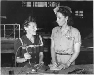 | Keywords: nara:arcid=196352 national archives nationalarchives women two standing uniform insignia wwii wartime 1942 1940s pearl harbor pearlharbor widows texas drill blackandwhite monochrome black and white Original Caption: Pearl Harbor widows have gone into war to carry on the fight with a personal vengeance. Mrs. Virginia Young (right), whose husband was one of the first casualties of World War II, is a supervisor in the Assembly and Repairs Department of the Naval Air Base at Corpus Christi, Texas. Her job is to find convenient and comfortable living quarters for women workers from out of the state, like Ethel Mann, who operates an electric drill., 08/1942 U.S. National Archives’ Local Identifier: From:Series: Franklin D. Roosevelt Library Public Domain Photographs, compiled 1882 - 1962 Created By:Roosevelt, Franklin D. (Franklin Delano), 1882-1945 Production Date: 08/1942 Persistent URL: arcweb.archives.gov/arc/action/ExternalIdSearch?id=196352 Repository: Franklin D. Roosevelt Library, Hyde Park, NY Access Restrictions: Unrestricted Use Restrictions: Unrestricted Original Caption: Pearl Harbor widows have gone into war to carry on the fight with a personal vengeance. Mrs. Virginia Young (right), whose husband was one of the first casualties of World War II, is a supervisor in the Assembly and Repairs Department of the Naval Air Base at Corpus Christi, Texas. Her job is to find convenient and comfortable living quarters for women workers from out of the state, like Ethel Mann, who operates an electric drill., 08/1942 U.S. National Archives’ Local Identifier: From:Series: Franklin D. Roosevelt Library Public Domain Photographs, compiled 1882 - 1962 Created By:Roosevelt, Franklin D. (Franklin Delano), 1882-1945 Production Date: 08/1942 Persistent URL: arcweb.archives.gov/arc/action/ExternalIdSearch?id=196352 Repository: Franklin D. Roosevelt Library, Hyde Park, NY Access Restrictions: Unrestricted Use Restrictions: Unrestricted |
