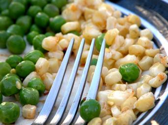 Keywords: peas and corn peas corn fork on plate fork peas on plate corn on plate food