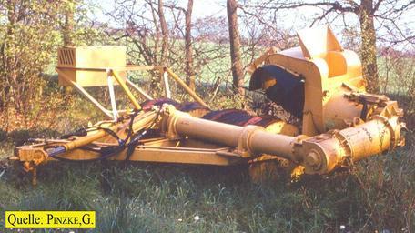 Keywords: Peat1.jpg Torfgewinnung in West-Mecklenburg abgestellte und žeingeklappte sowjetische Grabenfräse self-photographed Dr Günter Pinzke 1987 Cc-zero Landkreis Nordwestmecklenburg Peat cutting machines