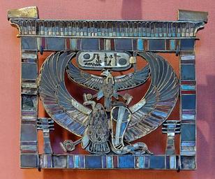 | Keywords: Pectoral Rameses II Louvre E79.jpg Pectoral bearing the name of Rameses II New Kingdom <br>Besides the Egyptian hieroglyphs in his en cartouche the en Shen ring and en Djed pillar are shown The Goddess of the Vulture and God of Ureaeus also shown Nekhbet and Wadjet Pectoral au nom de Ramsès II Nouvel Empire gold cloisonné glass turquoise cm 13 5 15 7 0 25 Institution Louvre object department egyptian antiquities room ID 150 17694 object history credit line From the excavations of Auguste Mariette in the Serapaeum of Memphis 1851 “1853 accession number Louvre number 79 Marie-Lan Nguyen 2006 other versions Cartouches of Ramses II Shrine-shaped pectorals Jewellery of the 19th dynasty of Egypt Shen ring Turquoise jewellery Ancient Egyptian art from the Serapeum of Saqqara Cloisonné of Egypt Hieroglyphs on pectorals Maat-goddess hieroglyph Pectoral neckwear Egyptian antiquities in the Louvre - Room 28 |