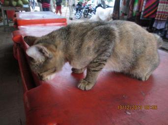 Peculiar short tailed cat at'Tiger Woods' restaurant binside Angkor Wat complex..JPG (1600x1200)
