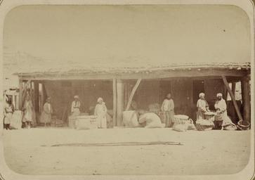 | Keywords: Peddling. Selling Barley WDL10741.png Artwork ru Кун Александ Людвигович 1840 1888 гг fr Kun Aleksandr L 1840-1888 en Kun Aleksandr L 1840-1888 zh 亚历山大·L· ,1840-1888 年 pt Kun Aleksandr L 1840-1888 ar كُن، ألكسندر ل ، 1840-1888 es Kun Aleksandr L 1840-1888 ru елочная то говля П одажа ячменя fr Colportage Vente d'orge en Peddling Selling Barley zh 售 售卖大麦 pt Comércio de ambulantes Vendendo cevada ar الباعة المتجولون بيع الشعير ru Эта фотог афия входит в этног афическую часть <em> Ту кестанского альбома </em><em></em> всесто оннего исследования Цент альной Азии п едп инятого после того как в 1860-х годах в егионе установилось господство Российской импе ии Альбом созданный по аспо яжению гене ала Константина Пет овича фон Кауфмана 1818 1882 годы пе вого гене ал-губе нато а оссийского Ту кестана состоит из четы ех частей в шести томах «Часть а хеологическая» два тома «Часть этног афическая» два тома «Часть п омысловая» один том и «Часть исто ическая» один том Основным составителем альбома был оссийский востоковед Александ Людвигович Кун аботавший совместно с иколаем Венедиктовичем Богаевским В альбоме п едставлено около 1200 фотог афий а также а хитекту ные планы аква ельные исунки и ка ты «Часть этног афическая» включает в себя 491отдельную фотог афию на 163 листах а фотог афиях изоб ажены п едставители азличных на одов егиона листы 1 33 повседневная жизнь и итуалы листы 34 91 а также виды де евень и го одов уличные то говцы и комме ческая деятельность листы 92 163 <br>База ы; Этног афические фотог афии; П одавцы п одовольственных това ов; Зе новые культу ы; Рынки; То говцы; П одавцы; Фотог афические исследования; агазины и лавки; Тю кские на оды fr Cette photographie est extraite de la partie ethnographique de l'<em>Album du Turkestan</em> étude visuelle complète de l'Asie centrale entreprise après que l'Empire russe prit le contrôle de la région dans les années 1860 Commandé par le général Konstantin Petrovich von Kaufman 1818 1882 premier gouverneur général du Turkestan russe l'album est composé de six volumes en quatre parties la partie archéologique deux volumes la partie ethnologique deux volumes la partie sur les métiers un volume et la partie historique un volume L'album fut essentiellement compilé par l'orientaliste russe Aleksandr L Kun assisté de Nikolai V Bogaevskii Il comporte près de 1200 photographies et inclut également des plans architecturaux des dessins à l'aquarelle et des cartes La partie ethnographique compte 491 photographies sur 163 planches montrant des individus des différentes peuplades de la région planches 1 à 33 des scènes de la vie quotidienne et des rites planches 34 à 91 ainsi que des vues de villages et de villes de vendeurs ambulants et d'activités commerciales planches 92 à 163 <br>Bazars; Photographies ethnographiques; Épiciers; Grain; Marchés; Marchands; Marchands ambulants; Inventaires photographiques; Magasins et boutiques; Peuples turciques en This photograph is from the ethnographical part of <em>Turkestan Album</em><em> </em>a comprehensive visual survey of Central Asia undertaken after imperial Russia assumed control of the region in the 1860s Commissioned by General Konstantin Petrovich von Kaufman 1818 82 the first governor-general of Russian Turkestan the album is in four parts spanning six volumes Archaeological Part two volumes ; Ethnographic Part two volumes ; Trades Part one volume ; and Historical Part one volume The principal compiler was Russian Orientalist Aleksandr L Kun who was assisted by Nikolai V Bogaevskii The album contains some 1 200 photographs along with architectural plans watercolor drawings and maps The Ethnographic Part includes 491 individual photographs on 163 plates The photographs show individuals representing the different peoples of the region Plates 1 33 ; daily life and rituals Plates 34 91 ; and views of villages and cities street vendors and commercial activities Plates 92 163 <br>Bazaars; Ethnographic photographs; Food vendors; Grain; Markets; Merchants; Peddlers; Photographic surveys; Stores and shops; Turkic peoples zh 这张照片出自<em> 其斯 相册 </em>的民族部分,该相册是俄罗斯 国 19 世纪 60 年代取得中亚控制 后, 手制 的 部针对该 区的综合 图像调查记录 相册由俄罗斯驻 其斯 (俄罗斯 国中亚属 的名称)首任 康斯 丁·彼得罗维奇·凡· 夫曼(Konstantin Petrovich von Kaufman,1818 82 年)将军赞助完成,共分六卷,四个部分: 古部分 (两卷); 民族部分 (两卷); 贸易部分 ( 卷)和 历史部分 ( 卷) 相册的主要编纂人是俄罗斯 方学 亚历山大·L· Aleksandr L Kun 亚历山大是 尼可莱·V·柏盖维斯基 Nikolai V Bogaevskii 的协助下完成相册的编纂 相册共含 1200 张照片,另 建筑平 图 水彩画和 图 民族部分 包括 491 张个人照,占 163 页 照片展现了该 区各个民族的人物形象(1
