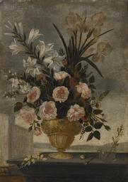 | Keywords: Pedro de CamprobÃn Still Life of Iris, Lilies, Roses and Carnations In Elaborate Urn.jpg Still life of iris lilies roses and carnations in elaborate urn with a blue and white cup and a small glass vase; landscape beyond one of a pair oil on canvas 94 x 73 7 cm http //www sothebys com Sotheby's Sale N08952 New York 2013-01-31 “2013-02-01 century 17 Creator Pedro de CamprobÃn PD-art-100 Images from Sotheby's Paintings by Pedro de CamprobÃn Still life paintings of flowers Still-life paintings with irises |