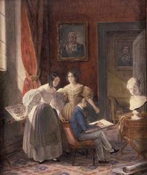 | Keywords: Pedro II of Brazil and his sisters 1839.JPG en Watercolor painting depicts Emperor Pedro II of Brazil studying next to his sisters Januária and Francisca c 1839 1839 Schwarcz Lilia Moritz 1998 in Portuguese As barbas do Imperador D Pedro II um monarca nos trópicos 2nd ed São Paulo Companhia das Letras ISBN 978-85-7164-837-1 Adolphe D´Hastrel 1805-1874 PD-Art Uploaded with UploadWizard Portrait paintings of Pedro II of Brazil 1839 Adolphe d'Hastrel Pedro II of Brazil in the 1830s 1839 1839 paintings 1839 in Brazil 1830s paintings from Brazil Group portraits with 3 persons Portraits of siblings Paintings of paintings John VI of Portugal Paintings of Pedro I of Brazil Busts in portrait paintings Red drapery in portrait paintings 19th-century family portraits of royalty ImageNote 1 853 304 70 82 1032 1232 2 Emperor Pedro I of Brazil also King Pedro IV of Portugal ImageNoteEnd 1 ImageNote 2 469 218 78 86 1032 1232 2 King João VI of Portugal ImageNoteEnd 2 ImageNote 3 339 510 86 107 1032 1232 2 Francisca then-Princess of Brazil ImageNoteEnd 3 ImageNote 4 454 490 90 109 1032 1232 2 Januária then-Princess Imperial of Brazil ImageNoteEnd 4 ImageNote 5 526 658 95 113 1032 1232 2 Pedro II of Brazil ImageNoteEnd 5 |