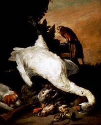 | Keywords: Peeter Boel 002.jpg Artwork Creator Pieter Boel between 1640 1660 Oil on canvas cm 135 107 Institution Museum Boijmans Van Beuningen Not on view 1069 OK LangSwitch Hunting still life with a swan Jachtstilleven met zwaan 1640-1650 12662 Jachtstilleven met zwaan 1640-1660 object history by 1864 Van der Hoop Rotterdam J van der Hoop LangSwitch das the le ~ Boijmans Rotterdam Rotterdam Price NLG 385 exhibition history credit line still life accession number 1069 OK collectie boijmans nl http //collectie boijmans nl Home http //collectie boijmans nl/en/work/1069 20 28OK 29 Info http //www museum-online nl/imageproxyboijmans asp cache yes filename 1069 20 28OK 29 jpg maxwidth 1600 maxheight 1600 cache yes Pic PD-old-100 Pieter Boel 1640 17th-century still life paintings of food 1640s paintings in the Netherlands Flemish paintings in the Museum Boijmans Van Beuningen Boel Peeter Dead swans in art Swans in painting Owls in paintings 17th-century paintings of animals 17th-century oil on canvas paintings in the Netherlands Oil paintings of birds Swans in 17th-century art |