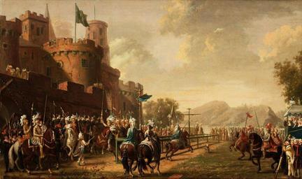 Keywords: Pehr Hilleström - Den förtrollade skogen.jpg Artwork karusell på Drottningholm creator Pehr Hilleström 1785 oil canvas cm 60 98 5 bukowskis se Public domain PD-old-100 Pehr Hilleström Tournaments in art