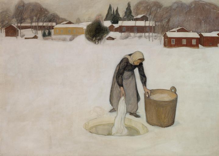 Keywords: Pekka Halonen - Vid vaken.jpg Artwork Q20791831 Creator Pekka Halonen title Vid vaken Washing on the Ice Avannolla 1900 oil on canvas cm 125 180 Ateneum Art Museum Antell Collection http //kokoelmat fng fi/wandora/w si A+II+782 3A11 Valtion taidemuseo credit line liitetty kokoelmiin 22 2 1902 A II 782 11 476545 Other versions Pekka Halonen - Washing on the Ice - Google Art Project jpg PD-old-auto-1923 1933 DEFAULTSORT Halonen Pekka; Washing on the Ice; Ateneum Pekka Halonen Paintings in the Ateneum Laundry in art 1900 paintings |