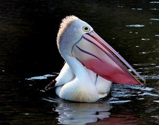 Keywords: pelican bird wildlife nature water swimming portrait icon beak wild feather looking